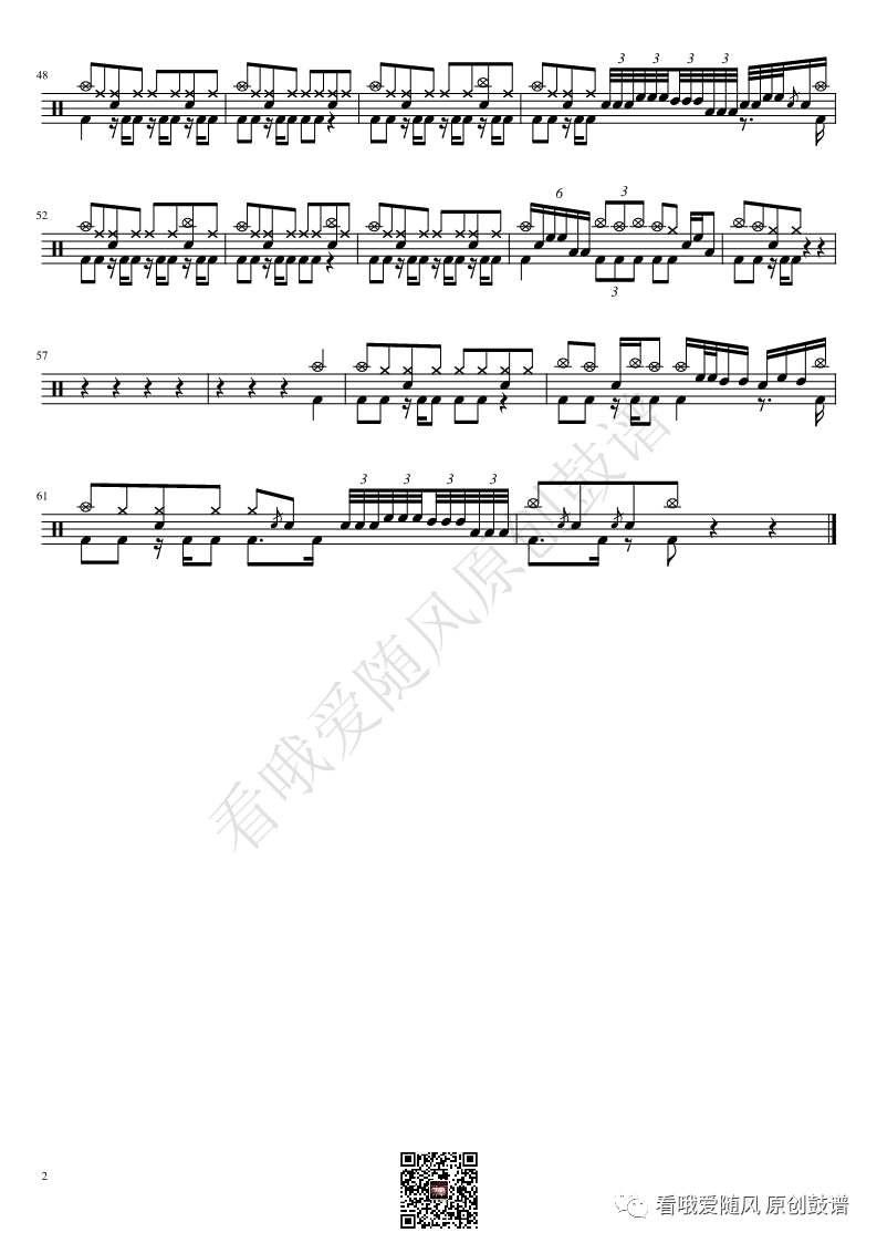 ONEOKROCK《IWasKing》架子鼓谱,看哦爱随风编配出品,共有2张高清图谱,由打鼓谱上传并分享。